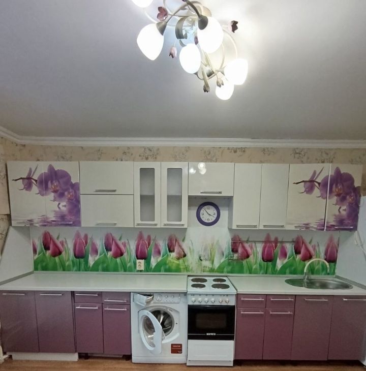Бытовая техника: холодильник, подсветка рабочей зоны на кухне, электрической плитой с духовым шкафом, стиральной машиной, кондиционером.