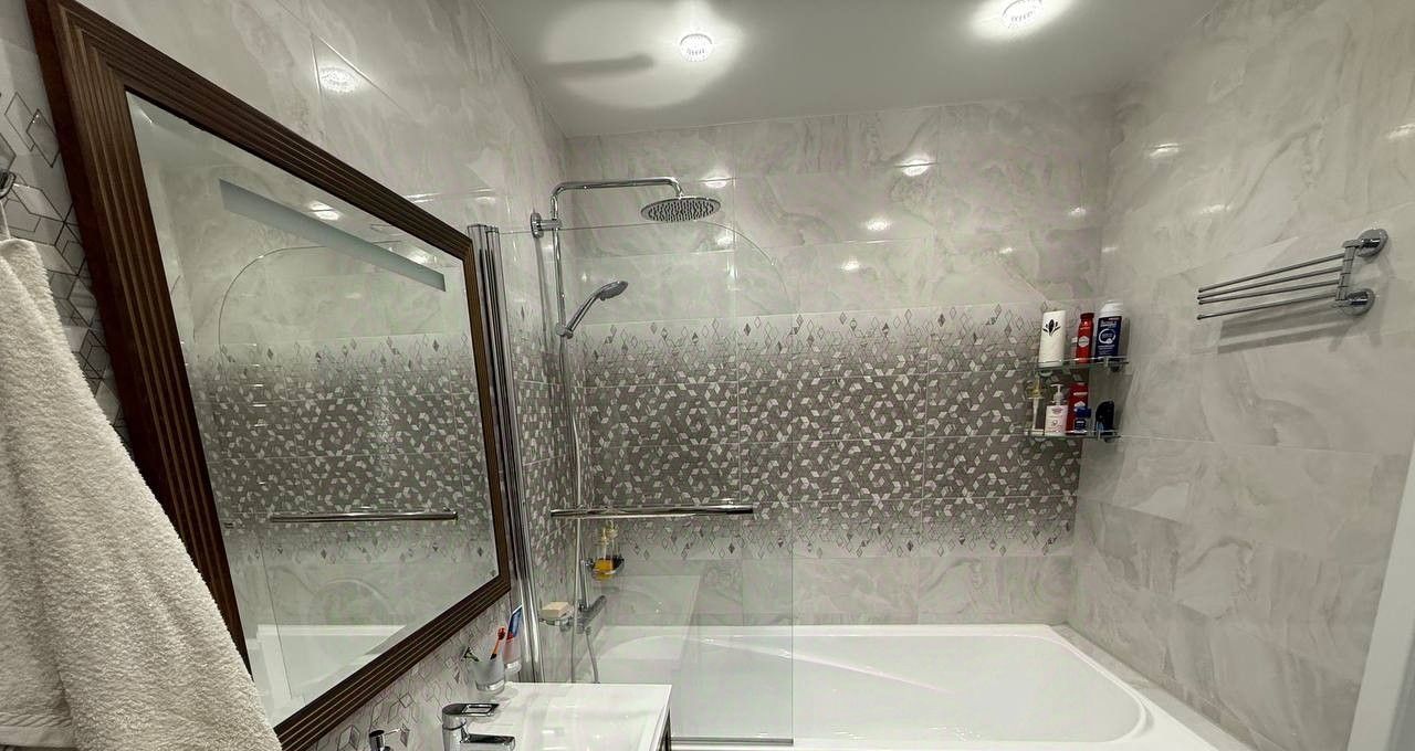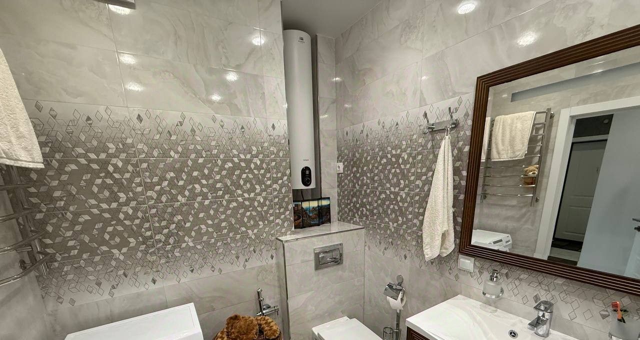 Тёплые полы для комфорта в любое время года. В ванной установлен водонагреватель на 50 литров.
