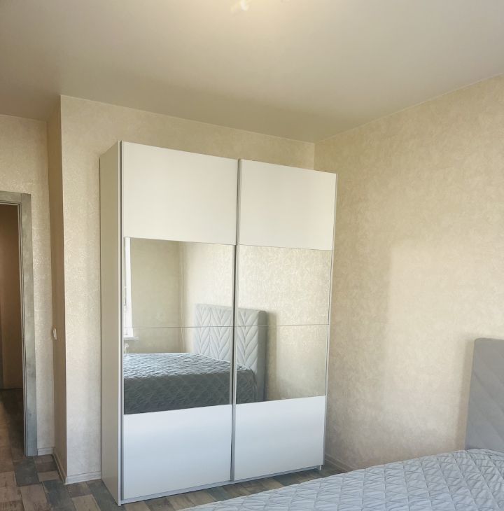 В квартире имеются 2 больших вместительных шкафа, диван 2,6*2,4 м, двух спальная кровать 1,7м*2 м, комод, шкаф в прихожей, кухонный гарнитур, большой вместительный холодильник, обеденный стол, 4 стула, стол на балконе, электрический чайник, стиральная машинка.
