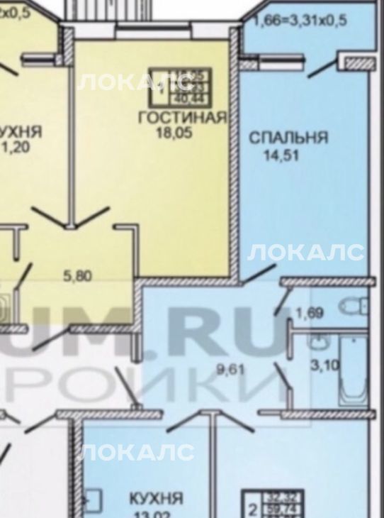2-к кв. Краснодарский край, Краснодар ул. Им. Героя Яцкова И.В., 9к3 (60.0 м²)