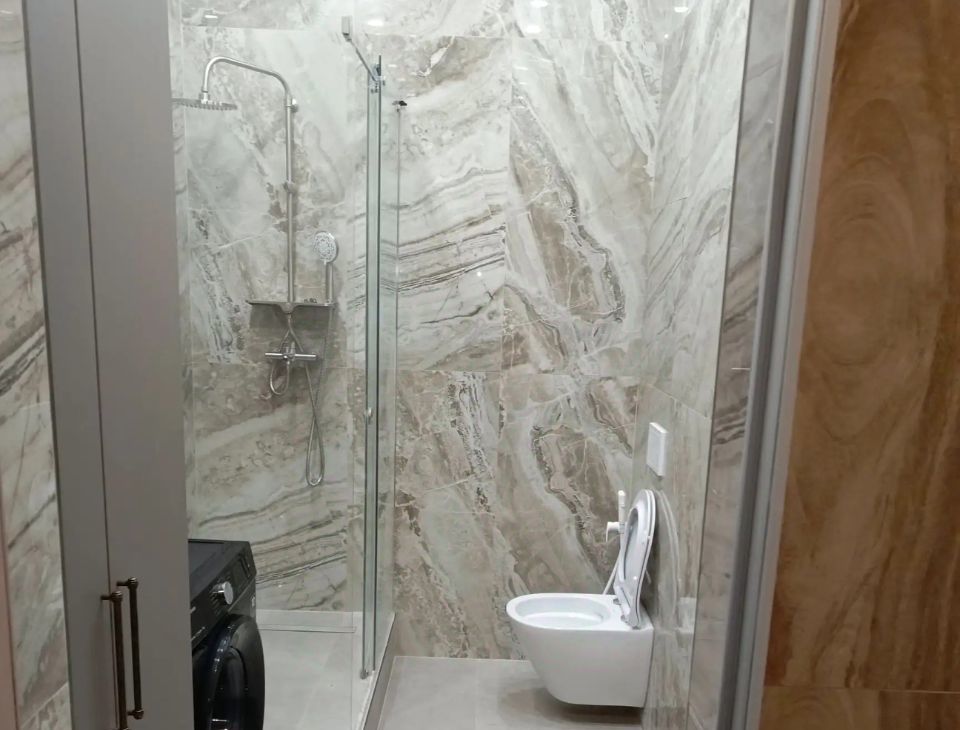 Квартира с дизайнерским ремонтом, полностью готова для комфортного проживания. В комнатах и на кухне есть вся необходимая мебель. Для вашего удобства установлены кондиционер, холодильник, телевизор и стиральная машина. Совмещенный санузел оборудован современной душевой кабиной. Окна выходят на улицу, открывая приятный вид.