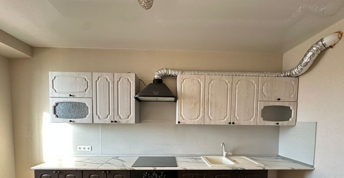 В квартире сделан евроремонт, из мебели остается прихожая и кухонный гарнитур с встроенной духовой печью и плитой.