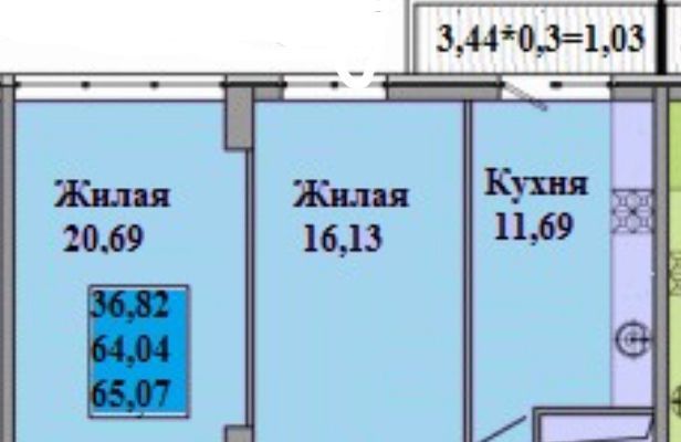 2-к кв. Краснодарский край, Краснодар ул. Имени Дмитрия Благоева, 29к1 (65.6 м²)