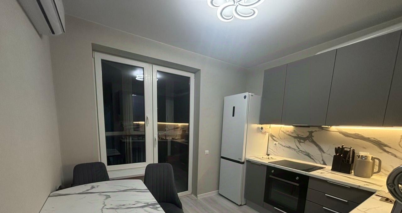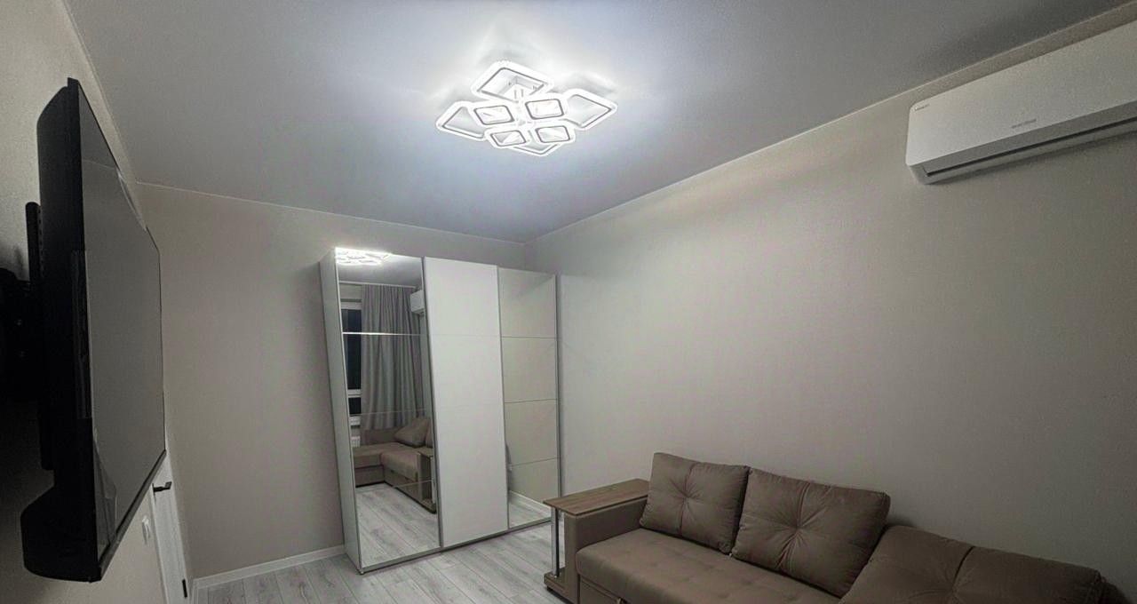 В квартире сделан качественный евроремонт. Помещения полностью меблированы: на кухне и в комнате есть вся необходимая мебель. Для вашего комфорта установлены кондиционер, холодильник, посудомоечная и стиральная машины, а также телевизор. Санузел совмещённый, оборудован ванной. Также имеется лоджия, где можно наслаждаться свежим воздухом.