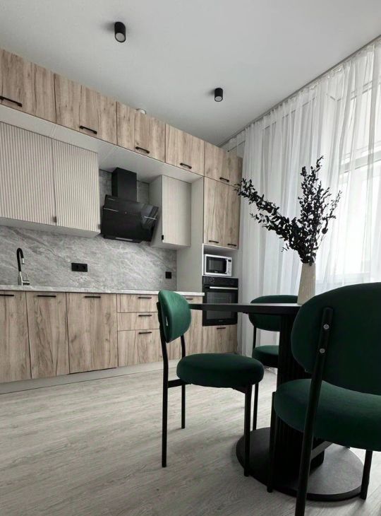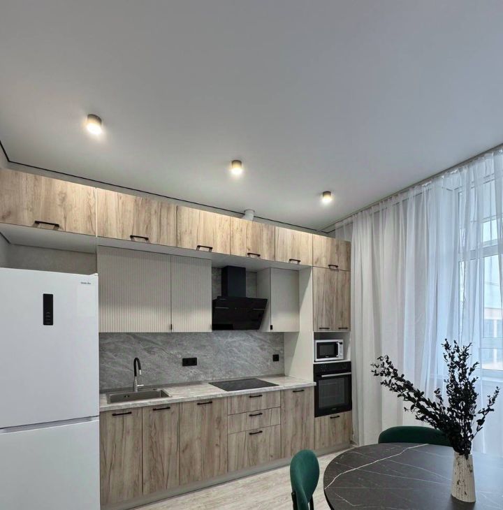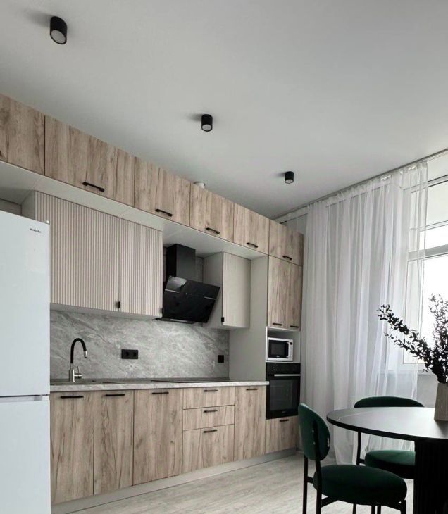 Кухонная зоне мы уделили особое внимание, создав пространство, которое объединяет современный стиль и максимальное удобство. Здесь вы найдете всё необходимое для комфортного приготовления пищи и поддержания порядка.