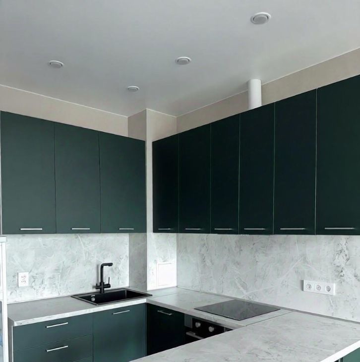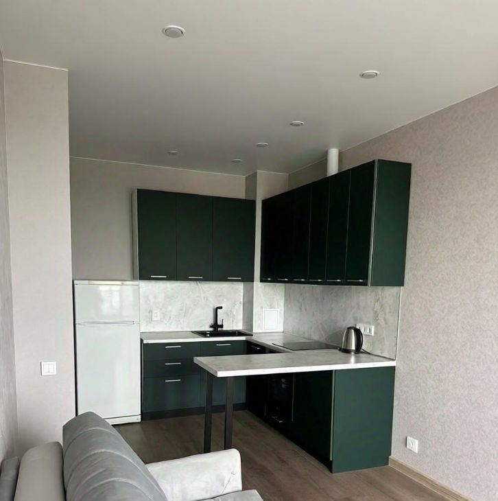 - Кухонная зона укомплектована (холодильник, духовой шкаф, вытяжка, плита, чайник, микроволновка)