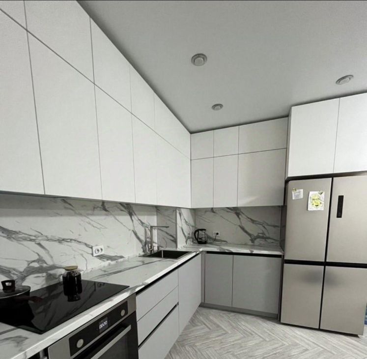 В квартире остается кухонный гарнитур с встроенной техникой, и места для хранения.