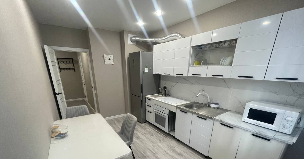 Сдается просторная 2-комнатная квартира с современным ремонтом на 4 этаже . Общая площадь квартиры — 68 кв. м,. Квартира полностью готова к проживанию: в наличии вся необходимая мебель и техника, кондиционеры,есть всё для комфортного проживания, много мест хранения. до 5 спальных мест В ванной комнате установлена ванна. имеется Лоджия и балкон.Дом находится в современном районе,рядом 3 школы , детские сады, поликлиника, парк, зоны отдыха и спорта, детские площадки, магазины,кружки для детей, остановки общественного транспорта , торговый центр, работают пассажирский и грузовой лифты, интернет