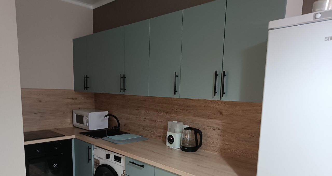 В квартире сделан современный евроремонт. Весь интерьер оформлен со вкусом и заботой о вашем удобстве. На кухне и в комнате есть вся необходимая мебель для жизни. Из техники вы найдёте холодильник, телевизор и стиральную машину — всё, что нужно для комфортного быта. Ванная комната оснащена ванной.Также есть одна лоджия.