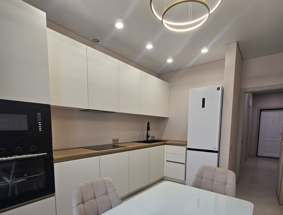 Предлагаем вашему вниманию стильную двухкомнатную квартиру в аренду с дизайнерским ремонтом. Квартира площадью 65 кв. м расположена на 12 этаже современного 24-этажного монолитного дома, построенного в 2021 году. Высота потолков составляет 2.8 метра, что создает ощущение простора и комфорта.