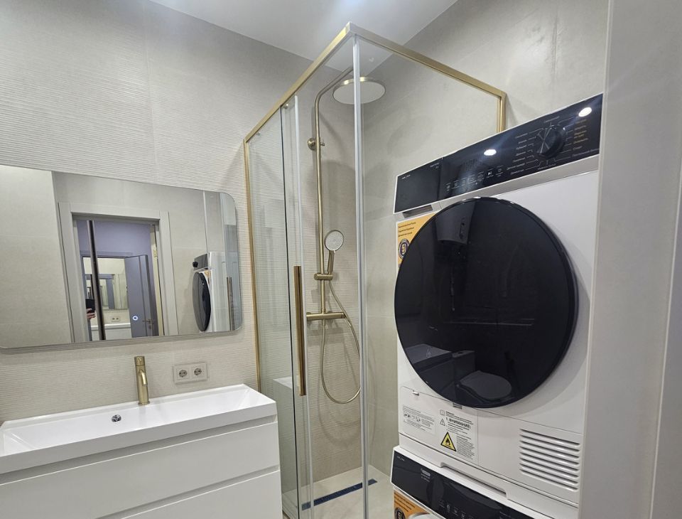 В квартире есть все необходимое для комфортного проживания. Кухня площадью 10 кв. м оборудована всей необходимой техникой: кондиционер, холодильник, посудомоечная машина, телевизор и стиральная машина. В комнатах установлена современная мебель, а в ванной комнате стильная душевая кабина. Приятным дополнением является наличие балкона, где можно насладиться видом на город.