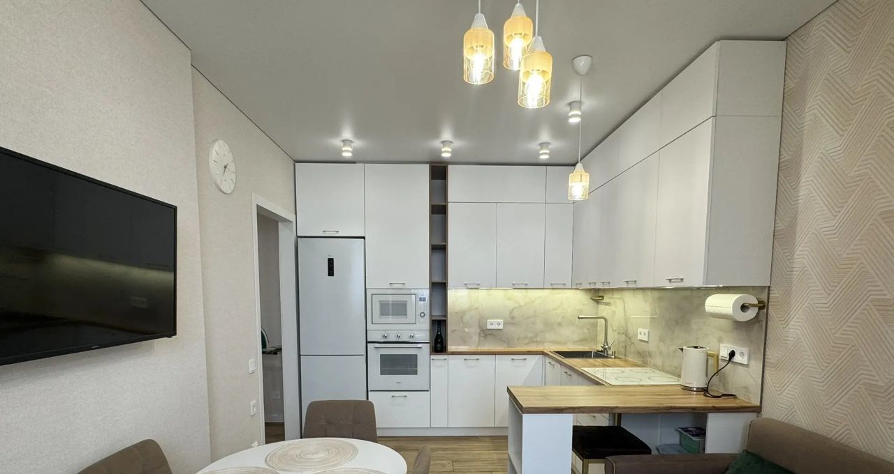 Квартира оформлена в современном дизайнерском стиле, что создает атмосферу комфорта и уюта. В вашем распоряжении просторная кухня с необходимой мебелью и техникой: кондиционер, холодильник, телевизор и стиральная машина. Гостиная и спальня также полностью меблированы. Из квартиры есть выход на лоджию и балкон, где можно наслаждаться свежим воздухом.