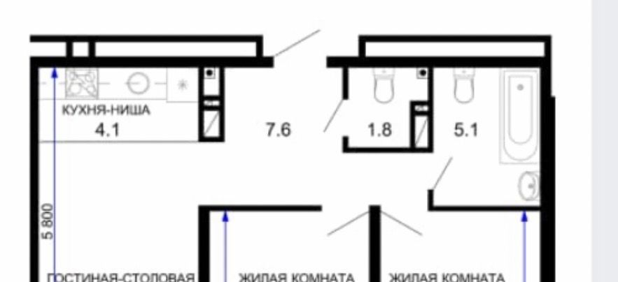 2-к кв. Краснодарский край, Краснодар ул. Адмирала Крузенштерна, 6/3 (41.0 м²)