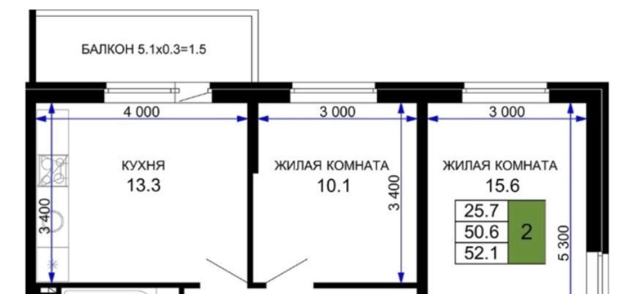 2-к кв. Краснодарский край, Краснодар ул. Летчика Позднякова, 2к17 (52.0 м²)