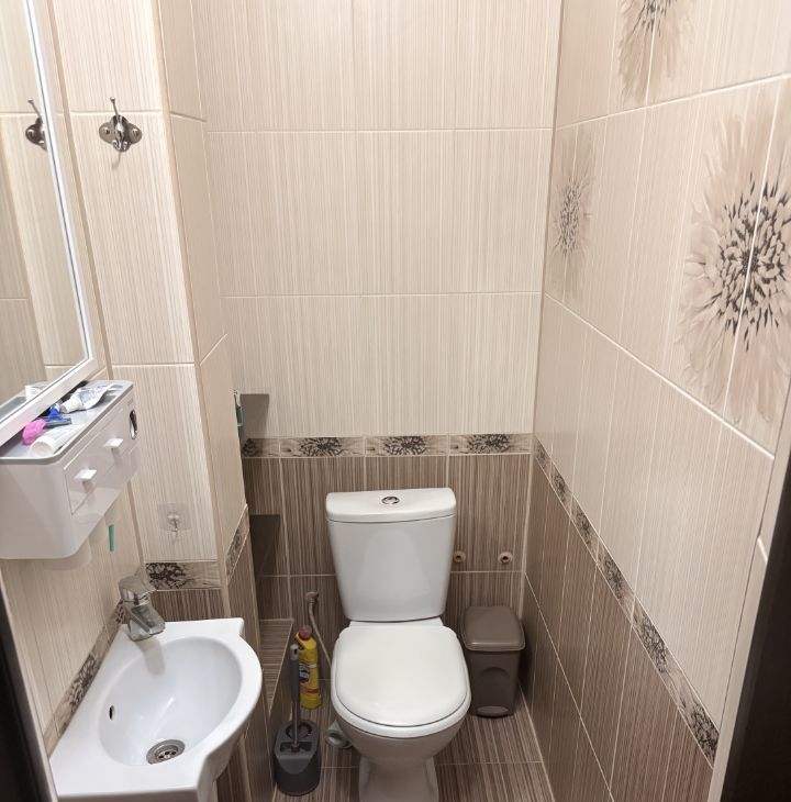 Кухня просторная, площадью 20 м², оборудована всем необходимым: холодильник, плита, шкафы. Из мебели также имеется обеденный стол и стулья. Ванная комната и туалет раздельные, оснащены современной сантехникой и стиральной машиной.