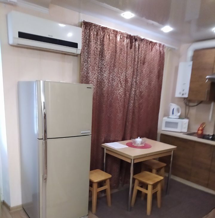 В квартире есть всё необходимое для комфортного проживания. В комнате и на кухне установлена мебель, а также вся необходимая бытовая техника: кондиционер, холодильник, телевизор и стиральная машина. Ванная комната оборудована ванной, что позволяет расслабиться после долгого дня. Совмещённый санузел выполнен в современном стиле. Из квартиры есть выход на балкон, где можно наслаждаться утренним кофе.