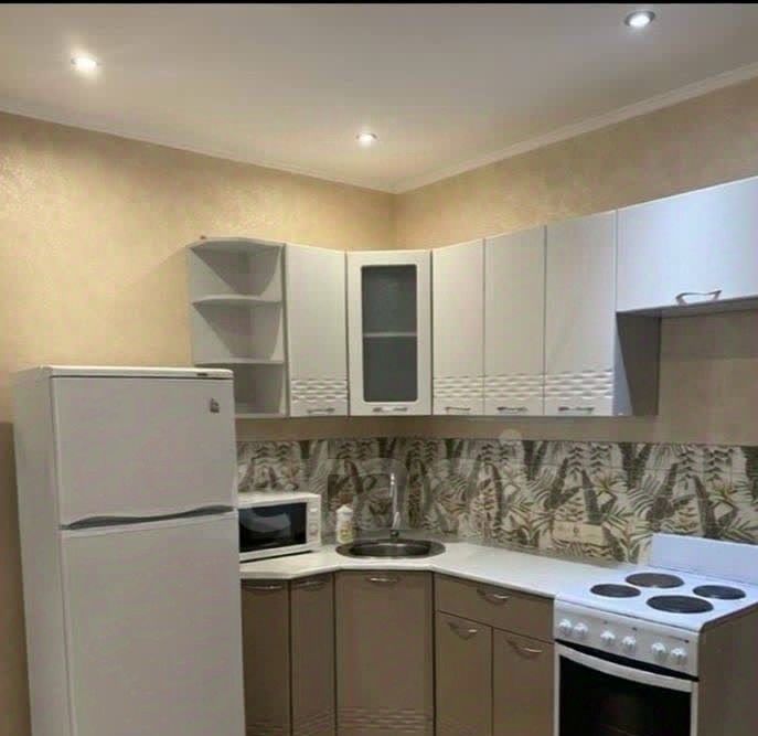 В квартире сделан косметический ремонт, установлена необходимая мебель: в комнатах и на кухне. Из техники есть кондиционер, холодильник, микроволновая печь, телевизор и стиральная машина, что создаёт комфортные условия для проживания. Санузел совмещённый, оборудован ванной. Есть один балкон, где можно отдыхать и наслаждаться свежим воздухом.