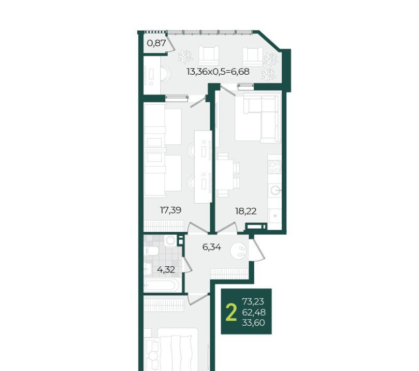 2-к кв. Краснодарский край, Краснодар бул. Адмиралтейский, 3 (56.0 м²)