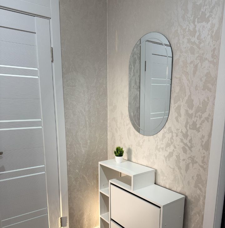 Прихожая: шкаф для вашей одежды, вешалка, обувница с полочками под парфюм и ключи, зеркало. Металлическая шумоподавляющая дверь.