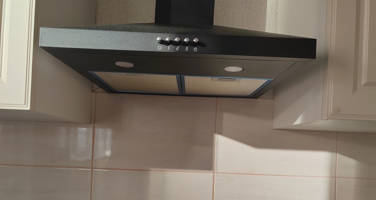- на кухне гарнитур с верхними и нижними шкафами, двухкамерный холодильник, вытяжка, встроенная варочная поверхность, стол обеденный, табуреты, духовка для любителей вкусной выпечки.