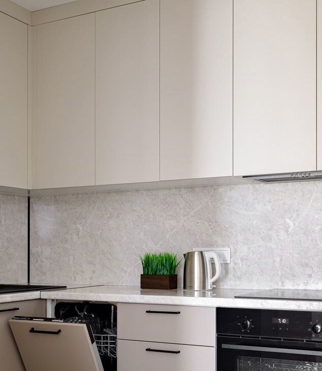 -вся техника и посуда (чайник, микроволновка, холодильник, фен, утюг, стиральная машина).