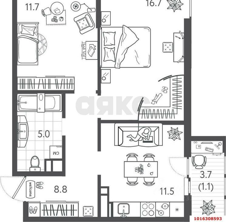 Квартира полностью упакована и предназначена для комфортной красивой жизни, есть вся техника, текстиль, мебель делалась на заказ. Она светлая и воздушная.