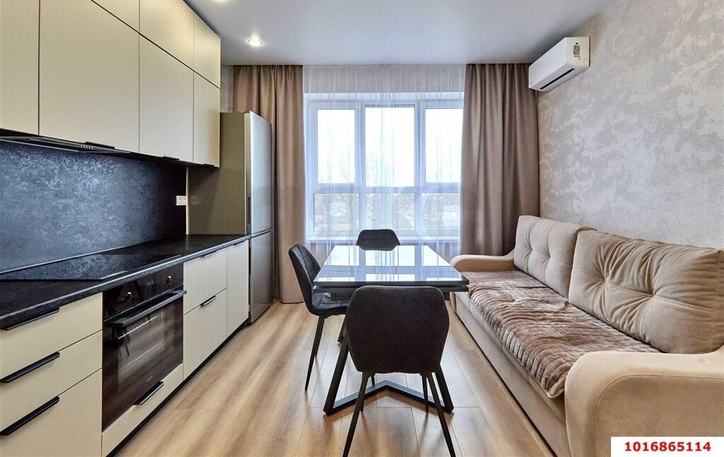 В квартире есть все необходимое для комфортной жизни: современная мебель на кухне и в комнате, кондиционер для поддержания комфортной температуры, а также холодильник и стиральная машина. Санузел совмещенный, с ванной. Планировка квартиры продумана до мелочей, а балкон позволяет наслаждаться свежим воздухом.