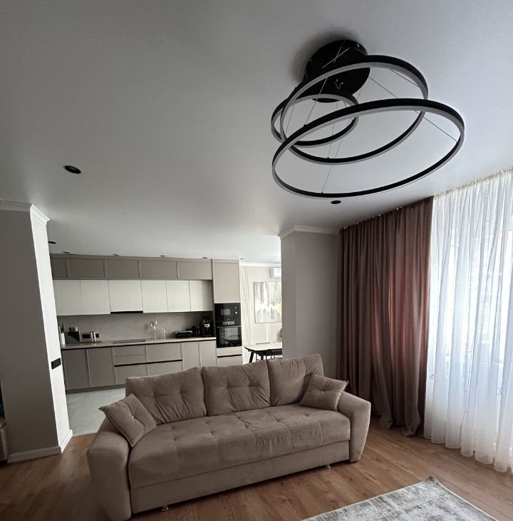 В квартире две изолированные спальни и общая зона кухня-гостиная.