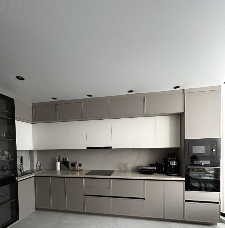 Техника качественная новая: индукционная плита, профессиональный духовой шкаф, встроенная микроволновая печь.