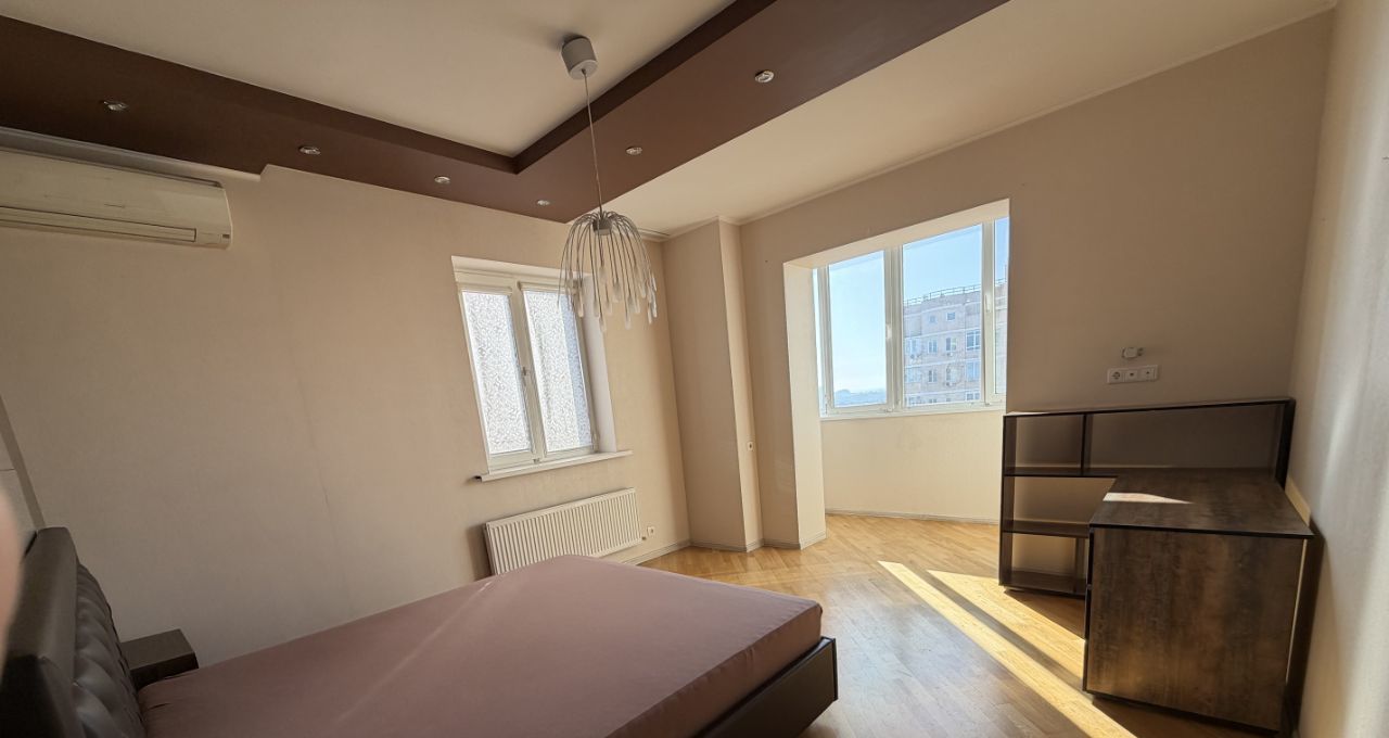 В квартире 3 больших изолированных спальни и большая кухня, гардеробная, кладовая, 2 сан. узла. Тамбур на 2 квартиры. Напольное покрытие - паркет, плитка. Окна выходят на 2 стороны (вид на реку Кубань и город). Во дворе дома удобная парковка, большая детская игровая площадка, круглосуточные продуктовые магазины, отделение поликлиники, мед. центр, стоматологии, салоны красоты, кафе, пункты выдачи маркетплейсов. В шаговой доступности школа (дорогу переходить не нужно), детские сады, гипермаркет ОКЕЙ, почта, библиотека, рынок. Удобная транспортная развязка: трамваи, троллейбусы, маршрутки. СОБСТВЕННИК.