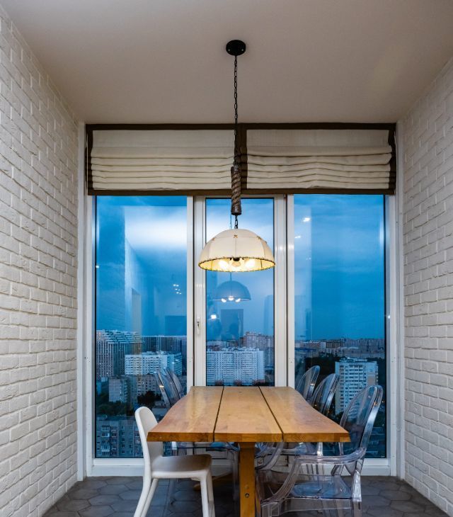 — гостиная с панорамными окнами, рабочим столом и отдельным столом для чая или настольных игр. Здесь есть большой диван, который раскладывается и может служить дополнительным спальным местом для гостей