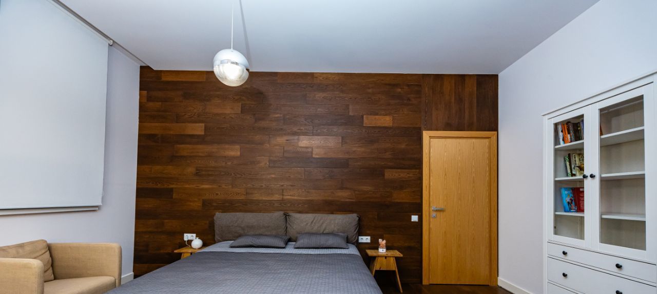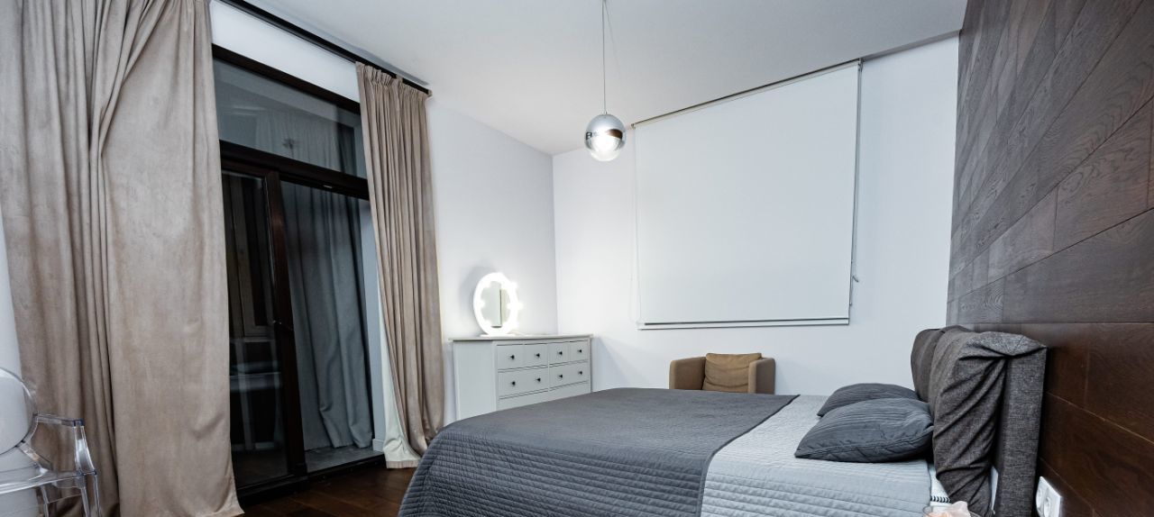— мастер-спальня с кроватью King size и ортопедическим матрасом, с выходом на утепленный панорамный балкон, который можно использовать в качестве рабочего кабинета