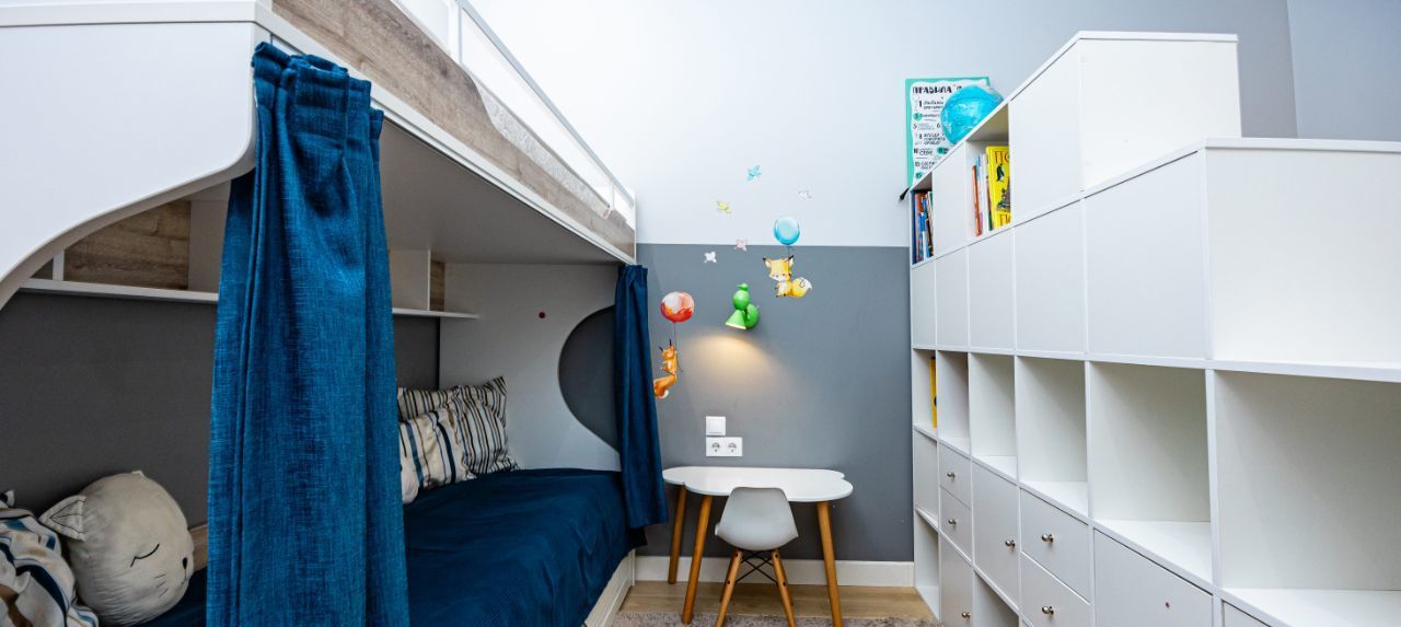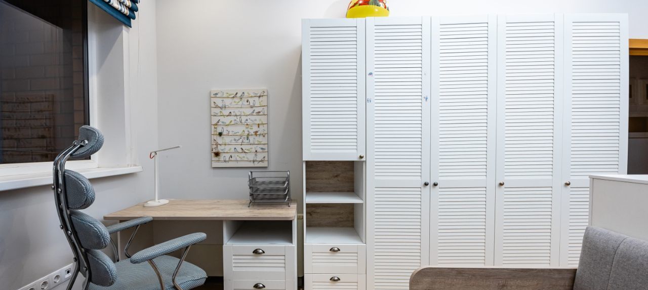 — вторая комната с возможностью использования в качестве кабинета, гостевой комнаты или детской: укомплектована рабочим местом, шкафом для вещей и кроватями