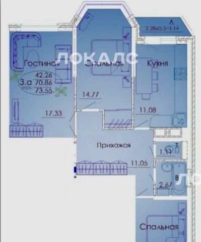 Общая площадь 73.55м