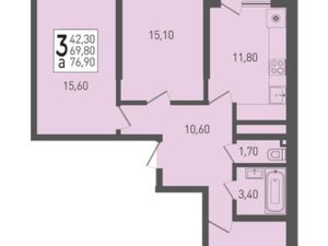 3-к кв. Краснодарский край, Краснодар пос. Березовый, ул. Целиноградская, 2И (76.9 м²)
