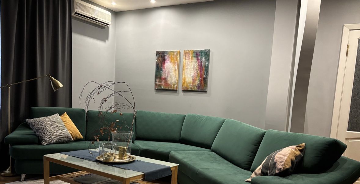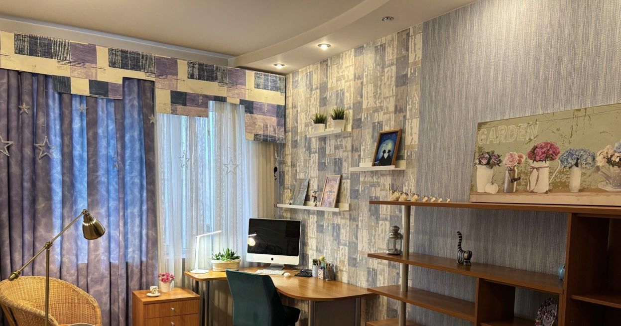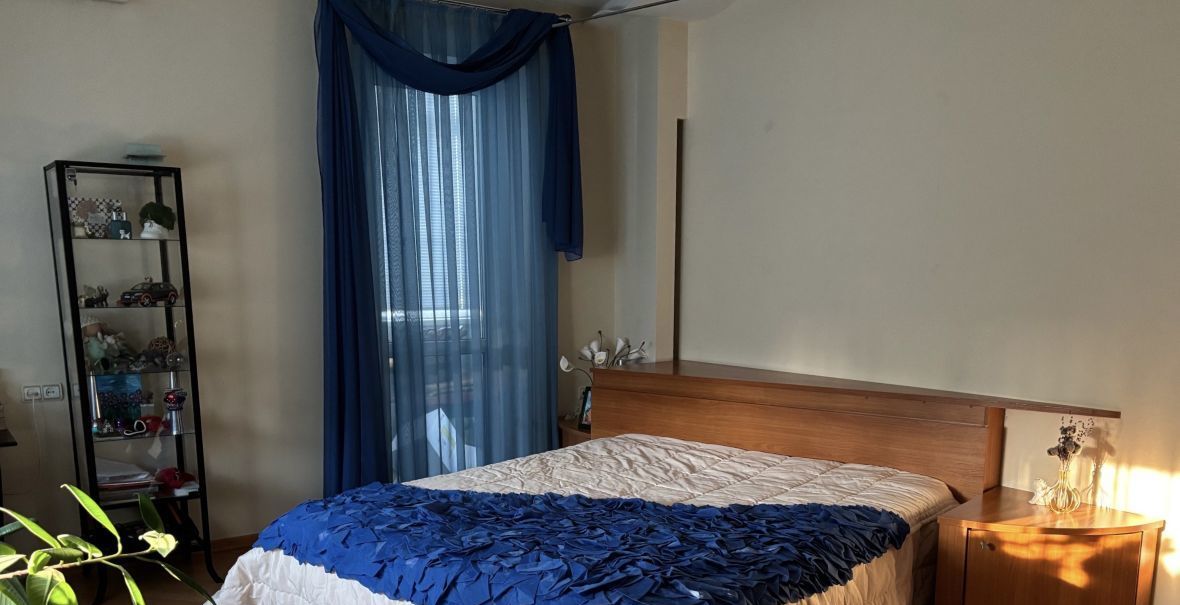 Интерьер выполнен в современном стиле, каждая комната обставлена мебелью. Кухня оснащена всей необходимой техников. Благоприятный климат в жаркое время года обеспечивают три сплит-системы. Совмещенный санузел с ванной добавляет комфорта. Окна выходят во двор, обеспечивая тишину и покой. Две ленточные лоджии — отличное место для отдыха.