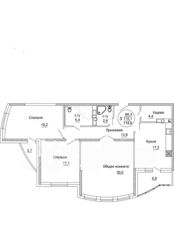 3-к кв. Краснодарский край, Краснодар ул. Черниговская, 1 (110.2 м²)