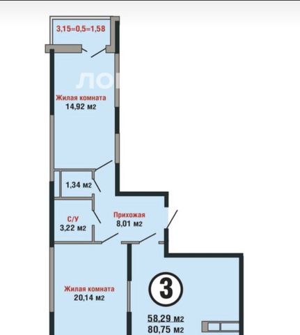 3-к кв. Краснодарский край, Краснодар ул. Имени Героя Георгия Бочарникова, 4к1 (80.0 м²)