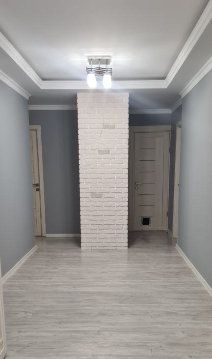 Предлагается в аренду просторная трехкомнатная квартира на первом этаже современного 17-этажного дома, построенного в 2013 году. Общая площадь квартиры составляет 90 квадратных метров, из которых 49 квадратных метров приходится на жилую зону и 18,3 квадратных метра занимает кухня. Высота потолков — 2,5 метра, окна выходят как на улицу, так и во двор.