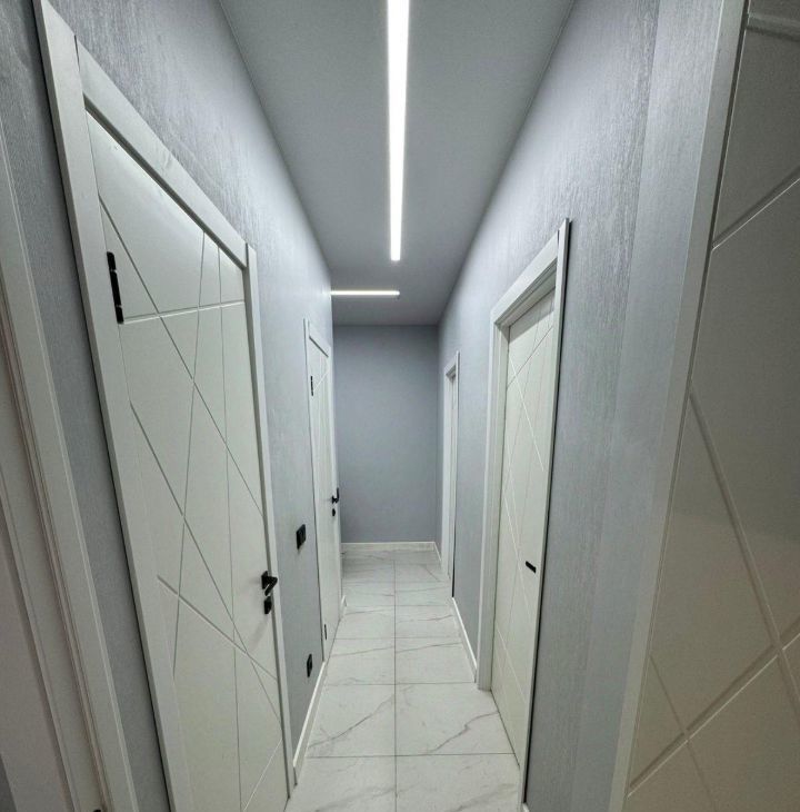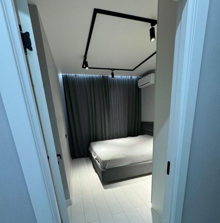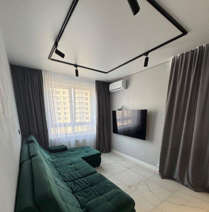 В квартире есть все необходимое для комфортной жизни. Просторная кухня площадью оборудована современной техникой: холодильник, посудомоечная машина и кондиционер. В ванной комнате установлена ванна и стиральная машина. В комнатах и на кухне есть мебель, а также телевизор для вашего удобства.