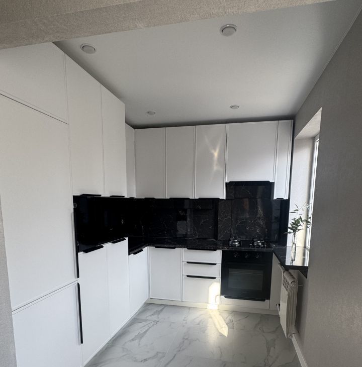 Спроектирована и установлена кухня со всей необходимой абсолютно новой встроенной техникой(холодильник No frost, стиральная машина с множеством программ, включая короткие программы и программу очистка паром + с местом для хранения порошков) посудомоечная машина, микроволновая печь, вытяжка, духовка электрическая, плита газ, колонка) Качественная мебель с хорошими надежными системами и доводчиками! Много мест хранения! Подоконник из столешницы обеспечивает дополнительную рабочую зону, красивое пространство и дополняет его!