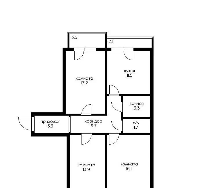 3-к кв. Краснодарский край, Краснодар ул. Имени Дзержинского, 54/13 (78.1 м²)