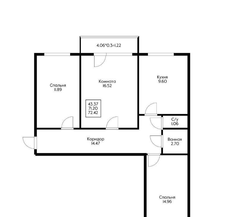 - Утепленная и остекленная лоджия, присоединенная к жилой площади;