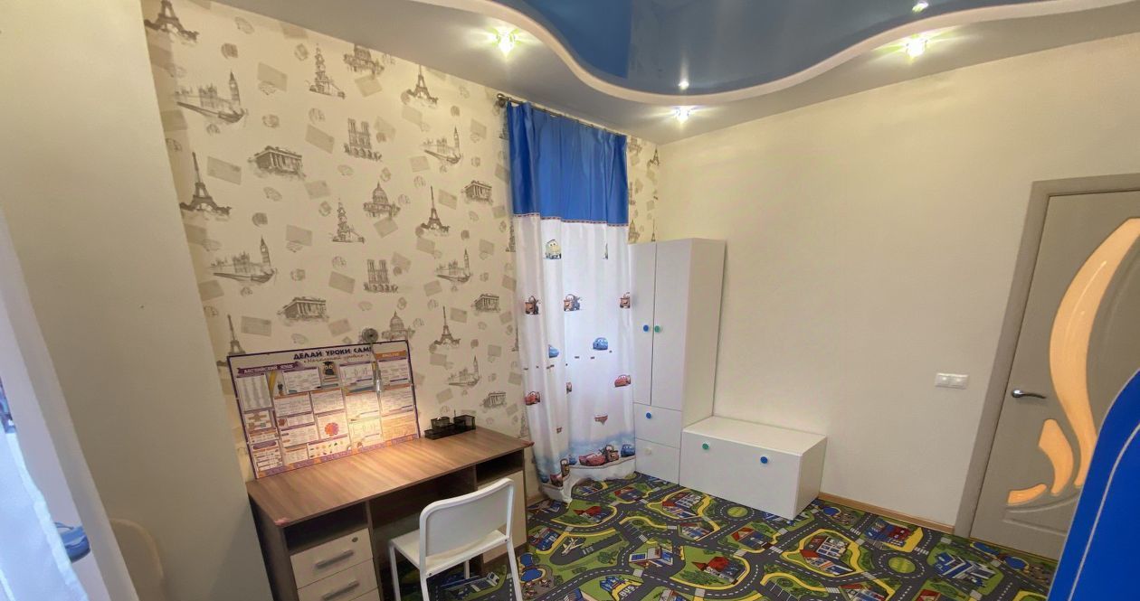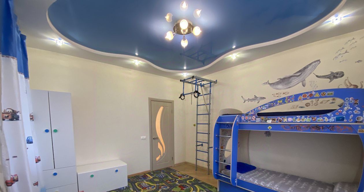 В 1 спальная комната для взрослых, зал, детская комната, просторная кухня, холл.