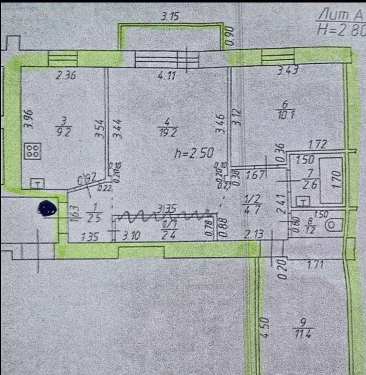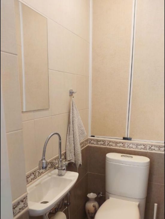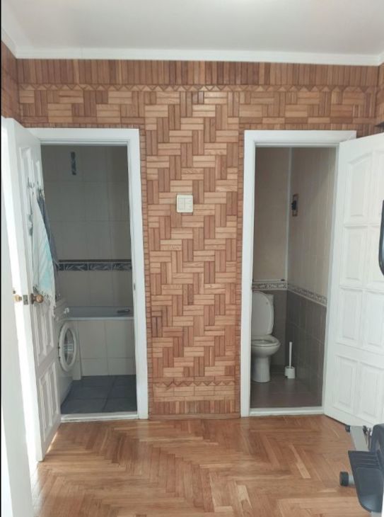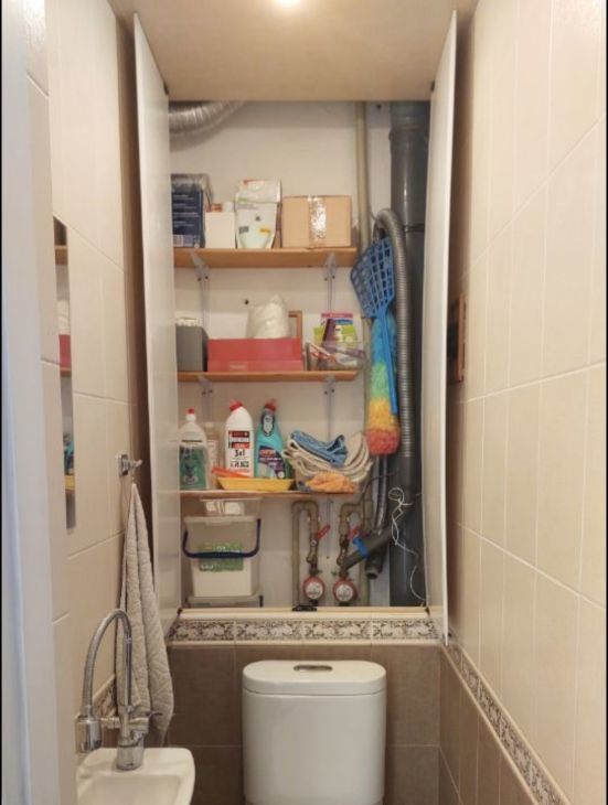 Санузел раздельный, расположен в глубине квартиры между двумя изолированными спальнями.
