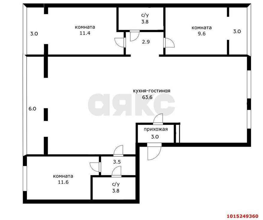 ОсновныехарактеристикиКухня‑гостиная:63,6 м²ссовмещённымбалконом(6 м²) отличноподходитдлясемейныхужиновиприёмовгостей.Трикомнаты: