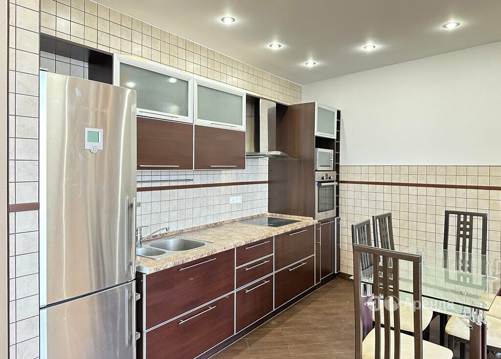 Сдаётся 3-комнатная квартира площадью 100 кв.м. с евроремонтом на 7 этаже в 9-этажном доме на срок от 11 месяцев. Из техники есть: