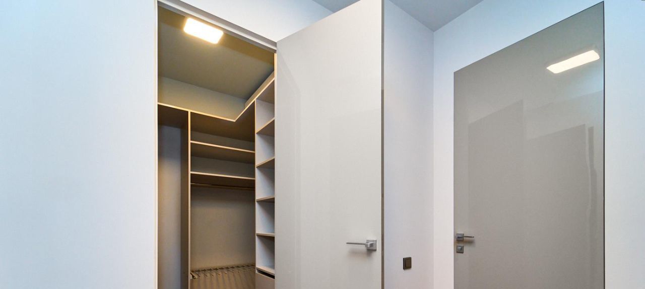 - Продуманная планировка — зона отдыха с тремя просторными спальнями, отдельной гардеробной, санузлом и изготовленными из итальянских материалов дверьми высотой 2400 мм с скрытым коробом.