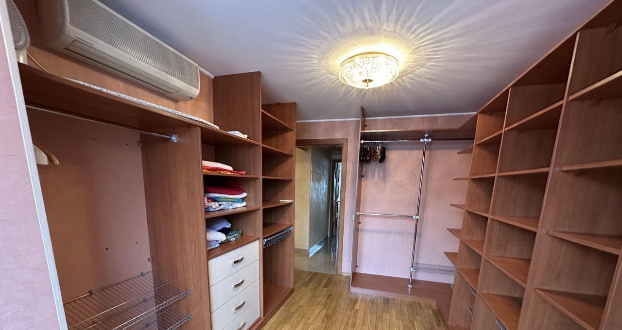 В квартире обустроены две спальни, есть одна комната под гардеробную, которую можно переделать в спальню