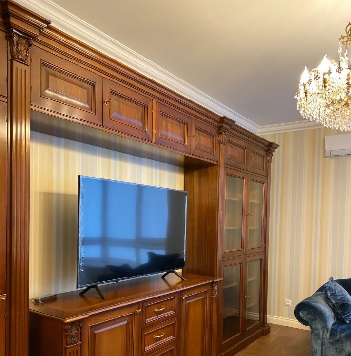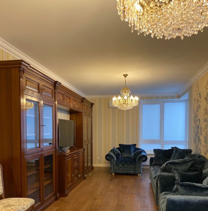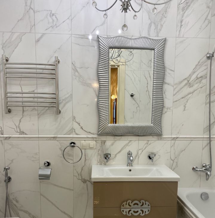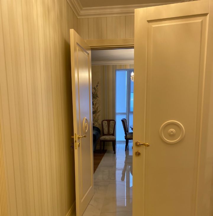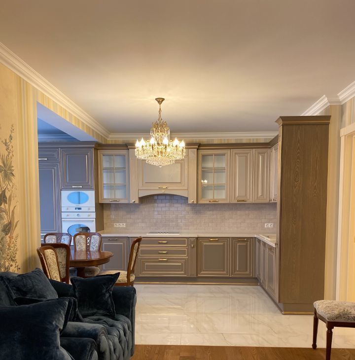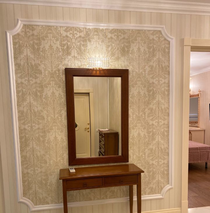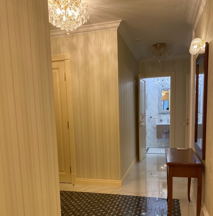 В квартире выполнен дорогой ремонт в классическом стиле с использованием натуральных дорогих материалов.
